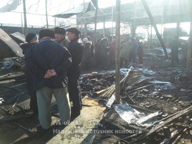 По факту пожара на рынке поселка  ЮКО проводится расследование Фото с сайта tvk-uko.kz