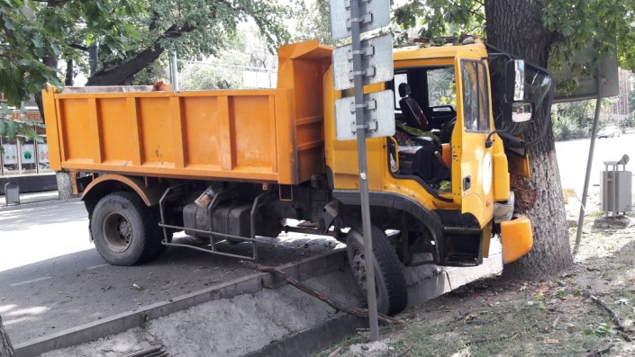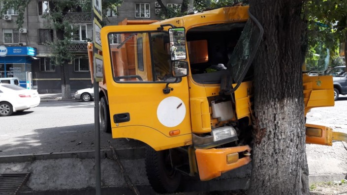 Грузовик врезался в дерево в Алматы