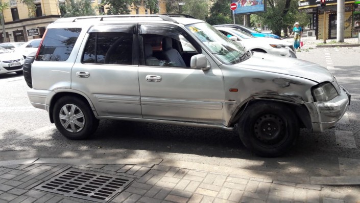 Со слов водителя Honda CRV, он следовал по Желтоксан в северном направлении и собирался совершать правый поворот на улицу Гоголя.  С его слов, якобы грузовик Hyundai ехал по автобусной полосе. Водитель Honda приступил к маневру, увидел грузовик, но столкновения не удалось избежать. Грузовик ударил автомашину Honda в правую часть, после чего водитель грузового автомобиля потерял управление и тот врезался в дерево.