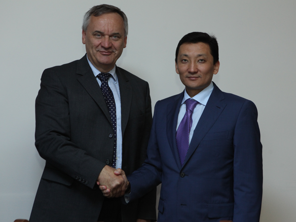 Канат Султанбеков на встрече с генеральным директором австрийской компании "Herz Armaturen G.m.b.H" Герхард Глинцерер 10 июня 2013 года. Фото astana.gov.kz.