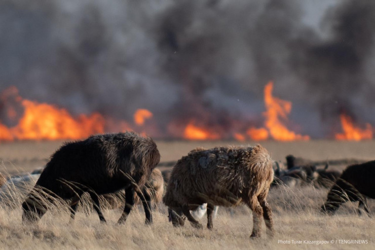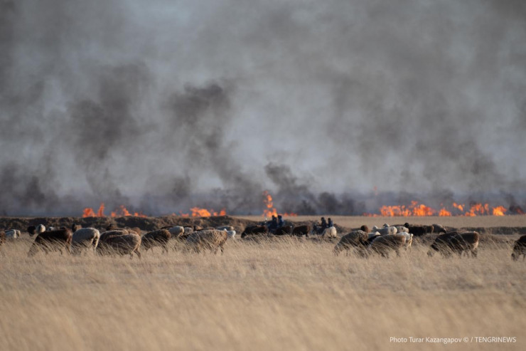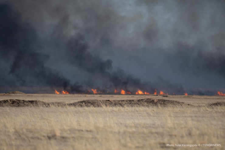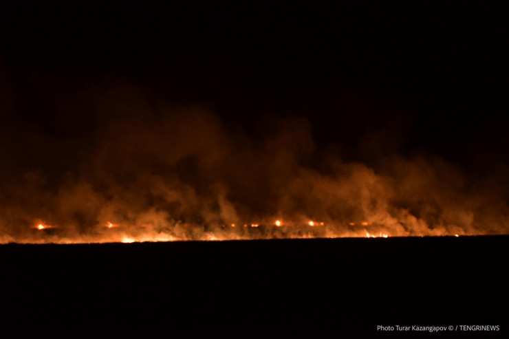 Камыш полыхает на окраине села в Акмолинской области Фото: ©Турар Казангапов