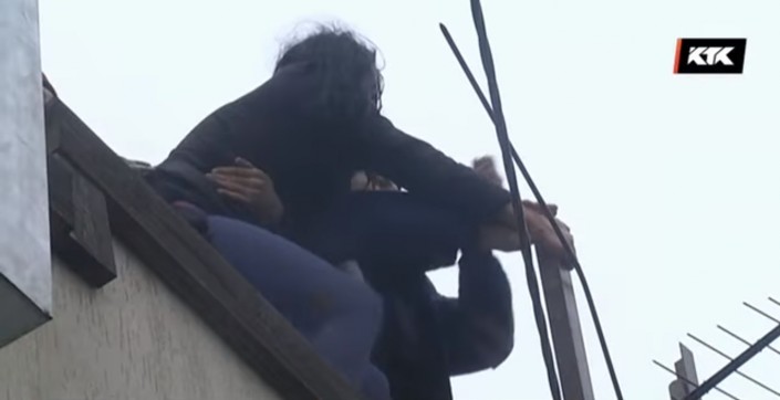 Никакие уговоры на разбушевавшуюся гражданку не действовали. Она поднимала крик при любой попытке приблизиться к ней, поэтому спасателям пришлось действовать силой. Девушку крепко связали и спустили с крыши на веревке. После этого связанную гражданку передали полицейским для профилактической беседы.