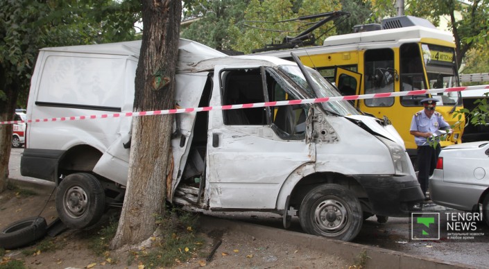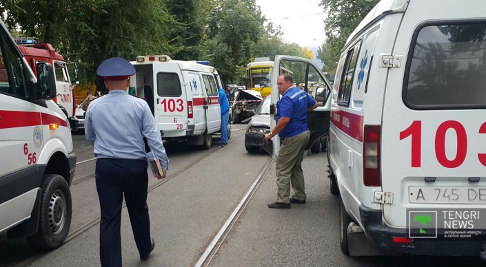 Корреспонденту Tengrinews.kz очевидцы рассказали, что тормоза у трамвая отказали еще на улице Шевченко. Стоит добавить, что на кабине трамвая есть знак "За рулем стажер".