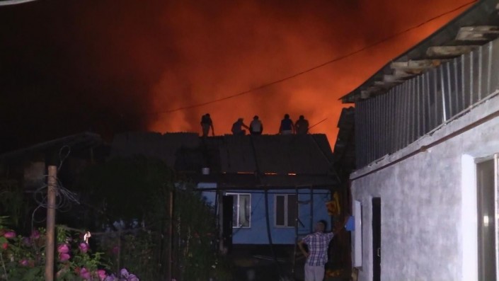 В поселке Туздыбастау Алматинской области горят жилые дома, передает корреспондент Tengrinews.kz.