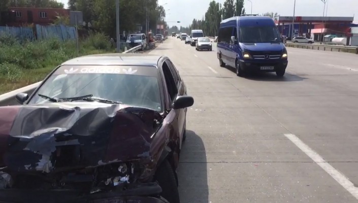 Со слов очевидцев, водитель "Жигули", двигаясь в сторону Капшагая, хотел развернуться в обратную сторону на разделителе. В это время на полном ходу машине наносит удар в заднюю часть Nissan Primera. "Жигули" отбрасывает на полосу встречного движения, разворачивает на 180 градусов, где ей во второй раз на полном ходу в заднюю часть бьет автомобиль Mazda. В результате пострадал пассажир "Жигули". Он был госпитализирован.