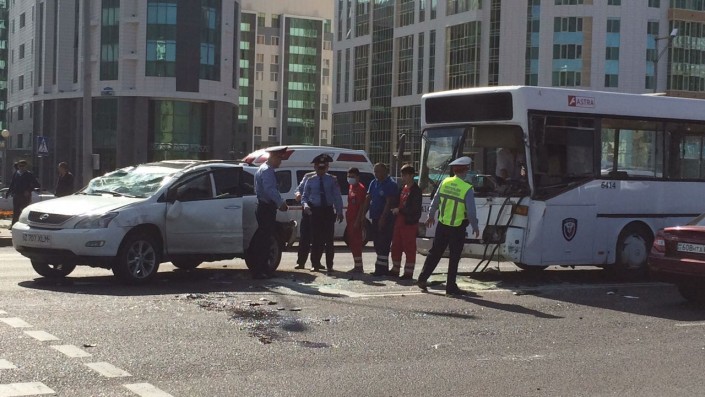 "Водитель Lexus, следуя по проспекту Кабанбай батыра, на перекрестке улицы Керей и Жанибек хандары проехал на запрещающий сигнал светофора и допустил столкновение с автомашиной марки Renault. После этого водитель Lexus допустил опрокидывание и затем столкнулся со стоящим на перекрестке городским автобусом", - прокомментировала аварию пресс-секретарь ДВД Астаны Софья Колышбекова.