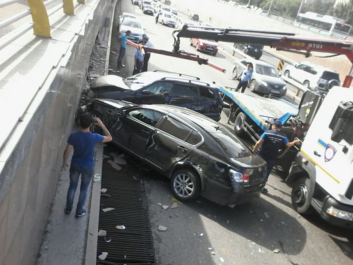 Авария произошла на пересечении улиц Саина и Шаляпина. По информации корреспондента, Toyota RAV4 и Toyota Caldina ехали по Саина в северном направлении, когда между ними попытался "проскочить" Lexus. Он задел RAV4, после его откинуло на Caldina. Последний автомобиль врезался в стену. У Lexus оторвалось колесо, его занесло и он повторно врезался в Toyota Caldina. Пострадал водитель Lexus, но по приезду "скорой" он от госпитализации отказался.