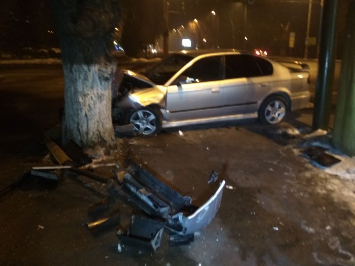 Водитель на автомобиле Subaru снес светофор в Алматы, передает корреспондент программы "Территория происшествий" на канале СТВ.