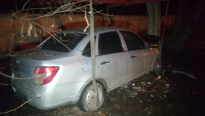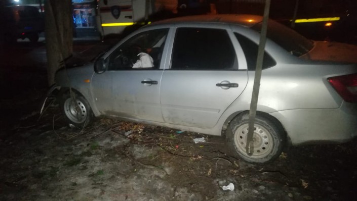 Автомобиль LADA Granta двигался по улице Котельникова в западном направлении и на пересечении с улицей Меншуткина по невыясненным причинам сбил пешехода. Далее машина врезалась в дерево.