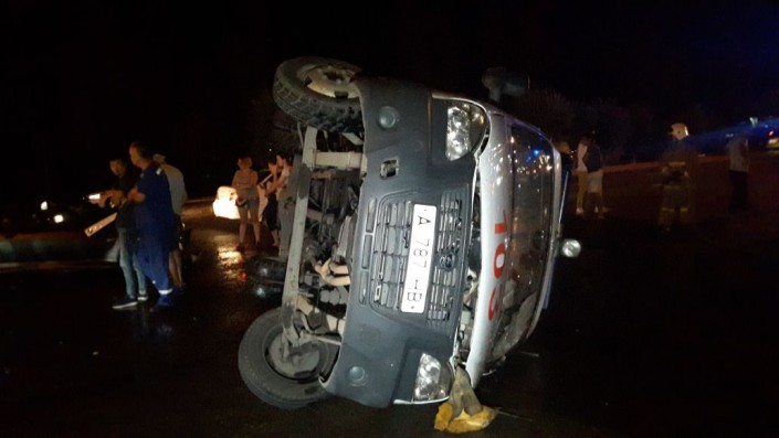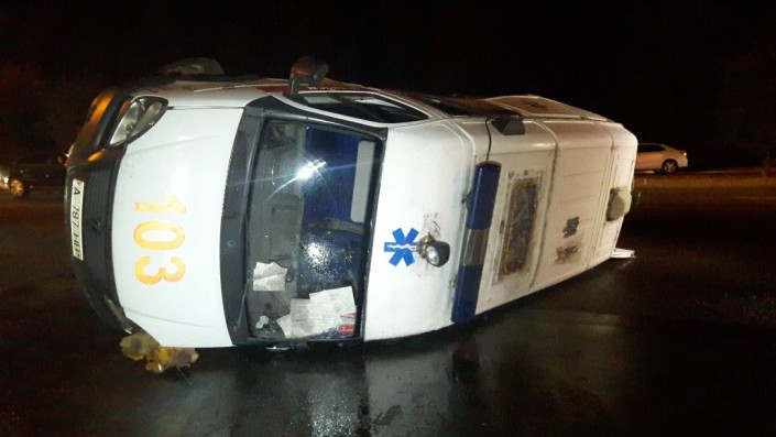 Машина скорой помощи перевернулась в результате ДТП в Алматы, передает корреспондент программы "Территория происшествий" на канале СТВ.