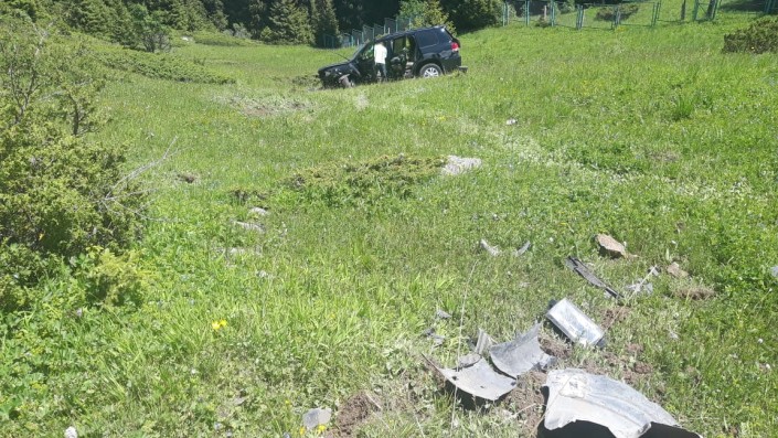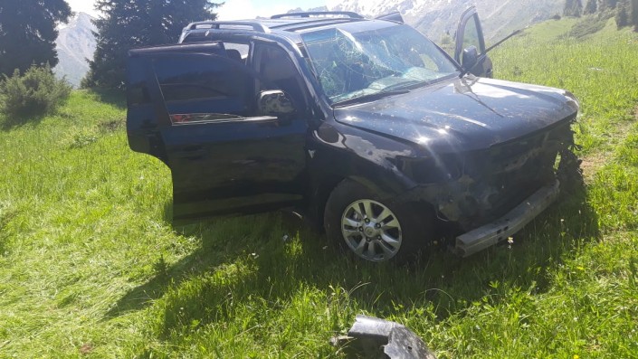 Toyota Land Cruiser спускалась по дороге к озеру в северном направлении, когда у машины отказали тормоза.