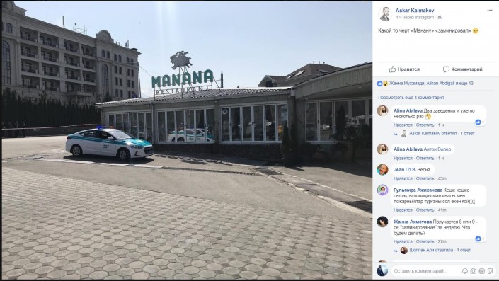 5 марта снова оцепили территорию возле здания Алмалинского районного суда и ресторана по проспекту Достык. Спецслужбы также ничего не обнаружили.