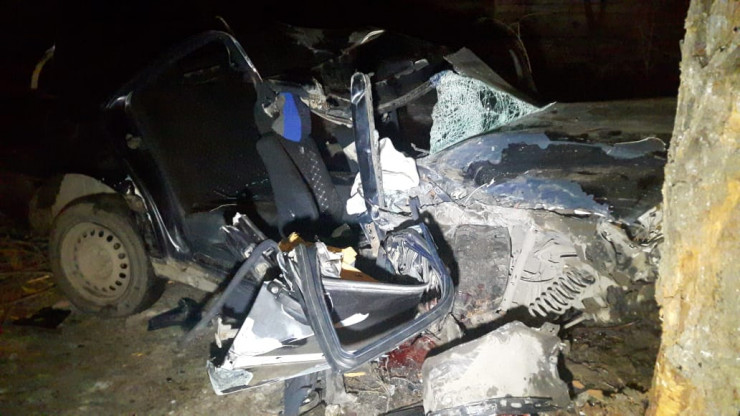 От сильного удара водитель и пассажир скончались. Двух пассажиров с заднего сиденья госпитализировали в ближайшую больницу в тяжелом состоянии. Доставать тела погибших из зажатой автомашины помогали спасатели.