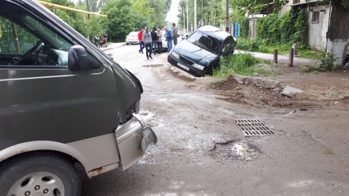 В результате Toyota вылетела с дороги и провалилась в арык. Водителя Toyota Avalon с различными травмами госпитализировали.
