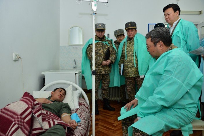 Министр обороны РК генерал-полковник Сакен Жасузаков навестил военнослужащих, пострадавших при сходе снежной лавины и находящихся в госпитале Таразского гарнизона, а также семьи погибших, передает корреспондент Tengrinews.kz со ссылкой на пресс-службу ведомства. Сообщается, что в военном госпитале оказывается необходимая квалифицированная медицинская помощь, в настоящее время состояние военнослужащих стабильное.