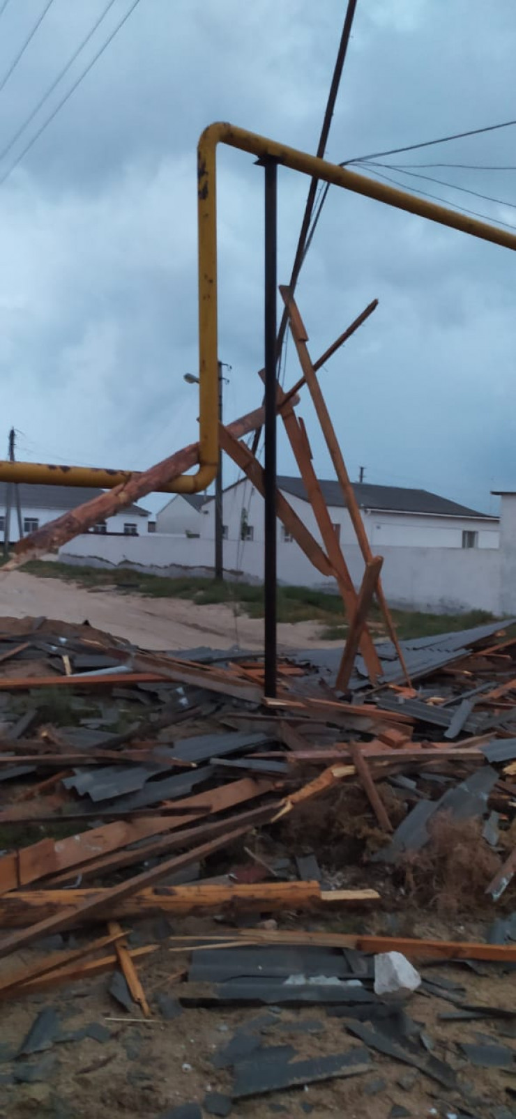 Инцидент произошел сегодня, 15 августа, примерно в 08.20. От удара молнии разрушилась кровля жилого дома, расположенного на улице Кожабекова в Форт-Шевченко (город в Мангистауской области). Судя по кадрам, упал и электрический столб.