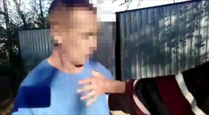 На кадрах видно лежащего на асфальте мужчину. Из височной области у него торчит отвертка. Он пытается встать, но не может. Вокруг стоят люди, один из них удерживает другого мужчину, находящегося рядом. В какой-то момент последний вырывается, подбегает к лежащему на земле и наклоняется к нему, возможно, чтобы вытащить из головы инструмент. Его вовремя останавливают очевидцы.