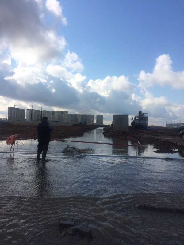 "По прибытии на место вызова стало известно, что в результате проведения земляных работ строительной компанией АstanaVipProject и нарушения обвалования озера Малый Талдыколь допущено попадание воды в кабельные лотки, и как следствие произошел перелив через дорожное полотно улицы Сыганак. Изначально протяженность перелива составляла около 300 метров, уровень воды достигал 20 сантиметров. Экстренные и коммунальные службы города сработали в оперативном порядке", - заявил Иманкулов.