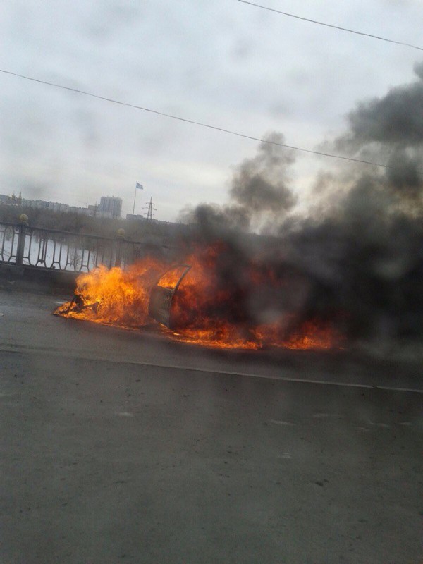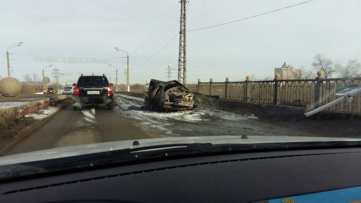 В Актобе на мосту в 5-м микрорайоне днем 23 января загорелся и взорвался легковой автомобиль Volkswagen Passat. Очевидцами инцидента стали десятки автолюбителей. Видео и фото происшествия они прислали на страницу zello_aktobe в Instagram.