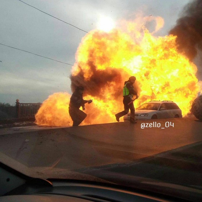 На мосту в Актобе произошло ЧП Момент взрыва. © instagram.com/zello_04
