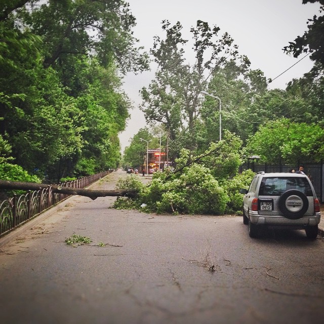 На улицах Алматы повалены деревья. Фото из Instagram-аккаунта пользователя @erdentelemisov.