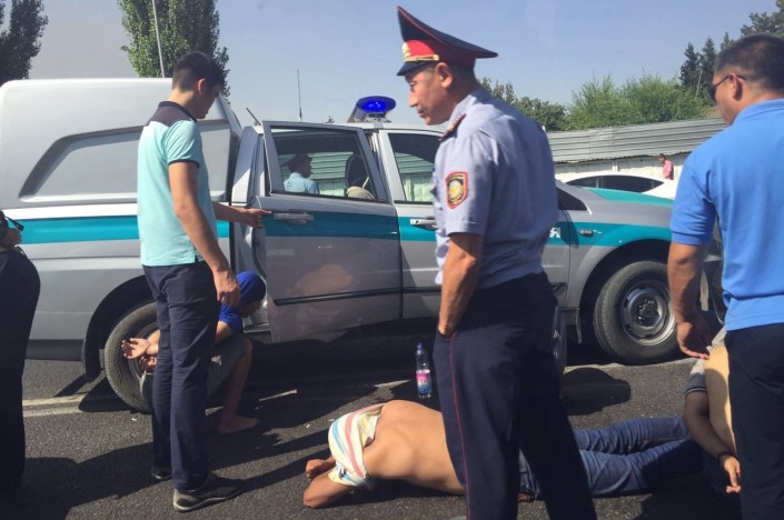По словам очевидцев происшествия, полицейские задержали молодых людей прямо на проезжей части. На месте задержания находились три полицейские машины. В результате данного инцидента по проспекту Райымбека образовался автомобильный затор. Между тем движение транспорта не было перекрыто или ограничено полицейскими.