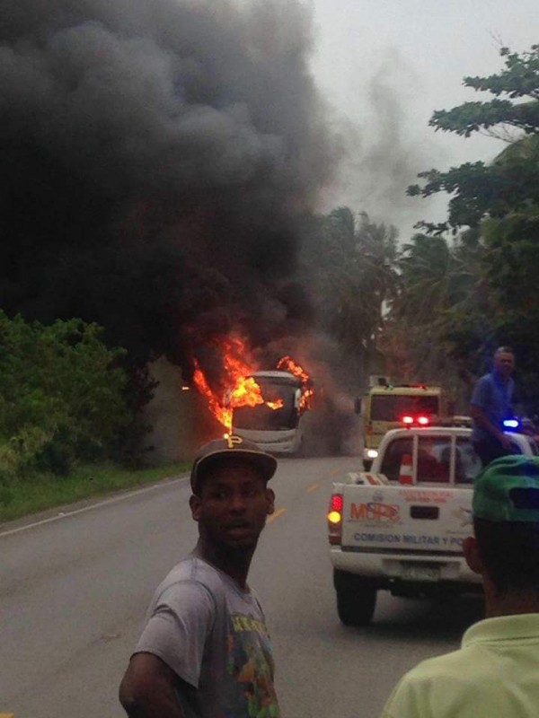 Несколько туристов не смогли выбраться из горящего автобуса в Доминикане Фото с Twitter @DelvisSantosTV