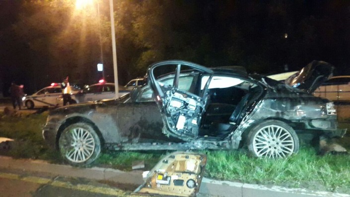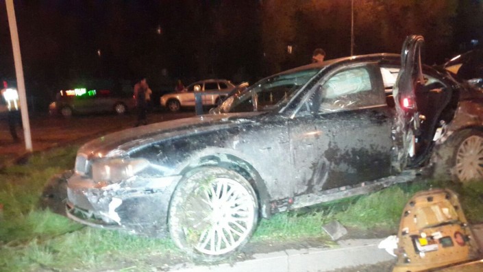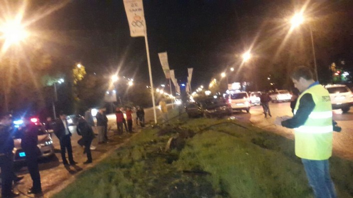 Авария произошла на Аль-Фараби за торговым центром Esentai Mall, перед улицей Шашкина (бывшая улица Университетская). Автомобиль марки BMW 745 двигался в восточном направлении. Водитель авто, не справившись с управлением, на большой скорости вылетел на газон и совершил наезд на препятствие.