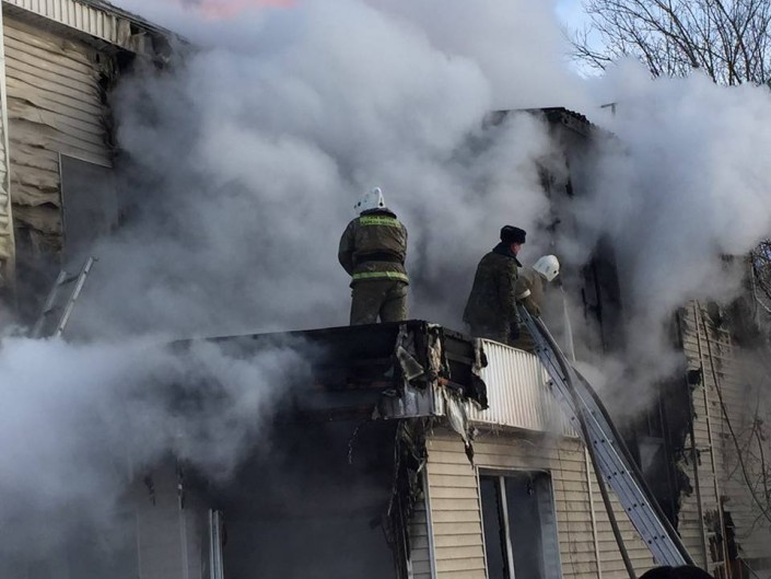 На месте ЧП находятся шесть основных машин ДЧС, дежурят кареты скорой помощи.
