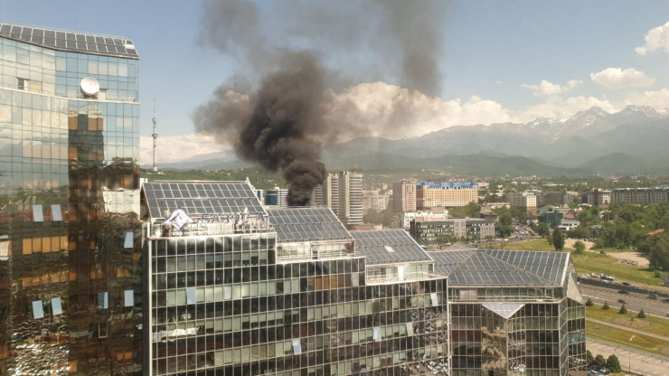"Проспект Назарбаева ниже проспекта Аль-Фараби. Предварительно, горит маршрутный автобус", - сообщили в ведомстве.