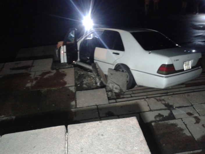 Инцидент произошел по улице Казыбек би, между проспектом Абылай хана и улицей Панфилова. В ходе распития спиртных напитков молодой человек решил съехать на своем автомобиле вниз по лестнице, в результате чего он протаранил лестницу и застрял. Отметим, что парковочная площадка у здания КБТУ на Старой площади является местом частого скопления молодежи.