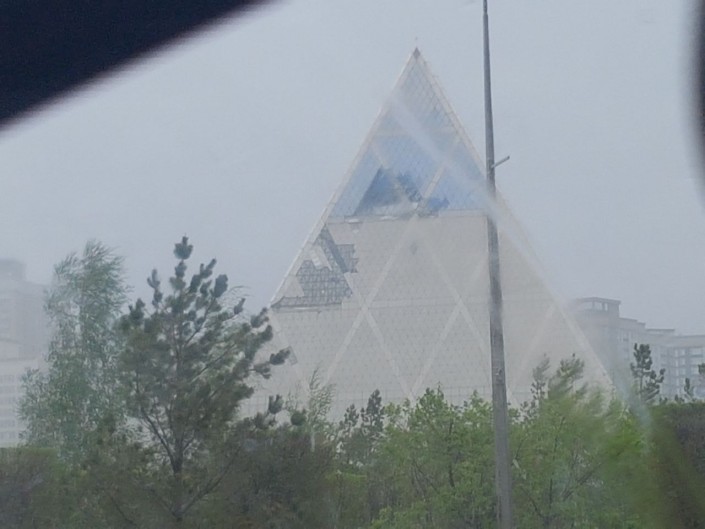 Пользователи соцсетей делятся фото и видео пострадавшего здания Дворца мира и согласия в Астане, передает Tengrinews.kz.