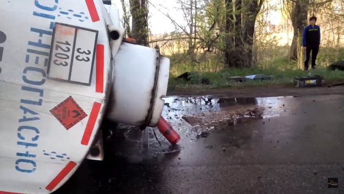 Очевидцы рассказали, что на пути у бензовоза столкнулись внедорожник Mitsubishi Pajero и легковушка LADA. Пытаясь избежать столкновения, водитель автоцистерны резко сманеврировал и завалил машину набок. При этом цистерна с топливом укатилась на обочину другого края дороги. Водителя вытащили из кабины живым и невредимым.
