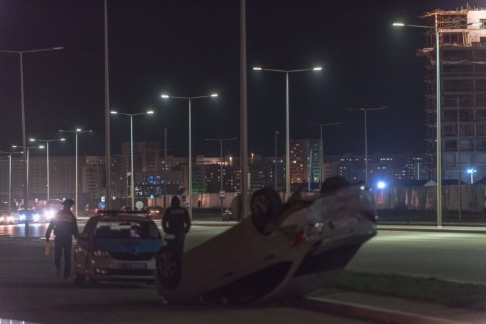 Подробности ДТП с перевернувшимся авто сообщили в ДВД Астаны Фото Максим Рожин©