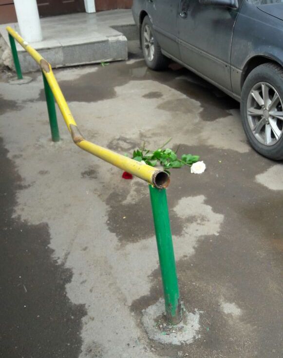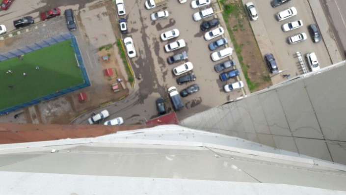 Он добавил, что примерно в 23.50 они услышали шум на улице. Именно тогда девушка и спрыгнула вниз. В результате падения погнулось металлическое ограждение около подъезда. По словам жильцов, девушка сама спрыгнула с перехода между лестничной площадкой и лифтовой.