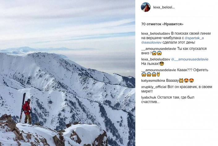 Погибший на Шымбулаке россиянин хотел обкатать "дикий" склон Фото Instagram / lexa_belosludzev
