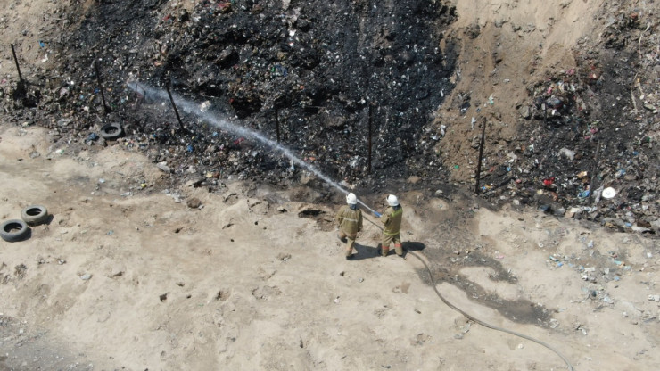"В 14.00 возгорание твердых бытовых отходов на мусорном полигоне в Илийском районе Алматинской области локализовано, угроза распространения огня снята. Работы по тушению проводятся в круглосуточном режиме. Тушение осуществляется путем рекультивации и засыпки тлеющей массы с одновременной проливкой водой очагов возгорания, для чего организован бесперебойный подвоз воды и грунта", - говорится в сообщении.