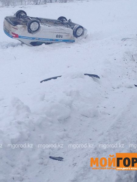 Полицейский автомобиль перевернулся на трассе в Западном Казахстане Фото с сайта mgorod.kz