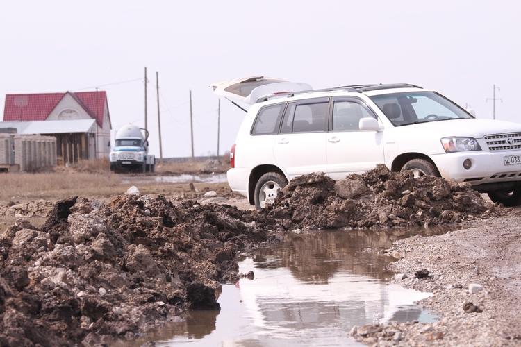 "Вчера в 10 вечера сухо было, но ближе к 12 ночи мы вернулись домой и проехать уже было невозможно", - рассказывает Бекнур Ильясов, который любезно вызвался нас прокатить на своем авто в самые непролазные места поселка.