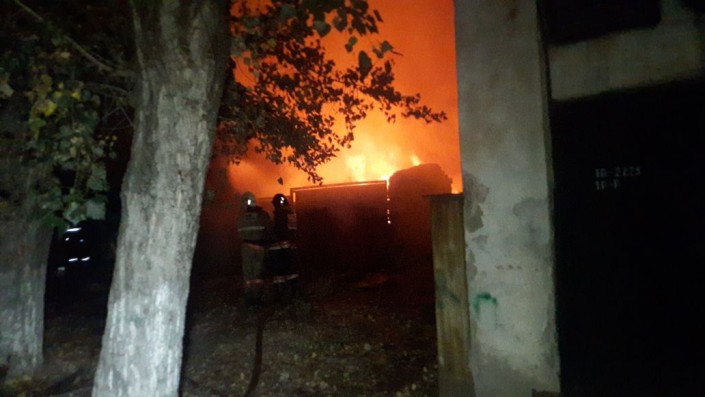 "К моменту прибытия пожарных к месту вызова обстановка была следующая: горели гаражи открытым пламенем. Была угроза распространения огня на ближайшее строение. Принятыми мерами огнеборцев предотвращено распространение огня. Пожар локализован в 20.17 часов и ликвидирован в 20.33 часов. От теплового воздействия произошла деформация лобового стекла, капота и крыши автомобиля марки BМW. Площадь пожара составила 100 квадратных метров. На ликвидацию пожара задействовано 27 человек личного состава и семь единиц техники", - говорится в сообщении ведомства.