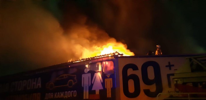 Пожар в автосалоне в Алматинской области тушили до утра