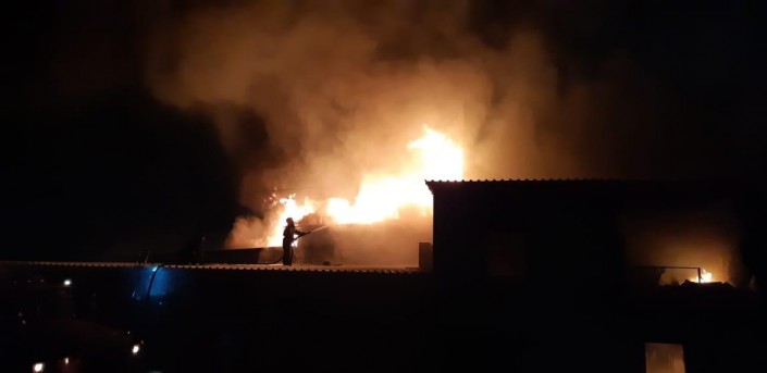 По данным ДЧС  области, ночью 12 января поступило сообщение о том, что в селе Бесагаш Талгарского района, на территории автосалона Nissan Finance горят складские помещения.