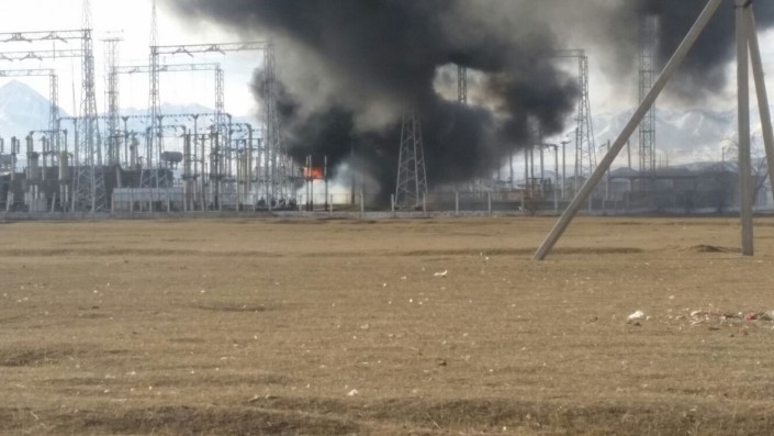Пожар на железнодорожной электроподстанции произошел в Таразе Фото очевидцев.