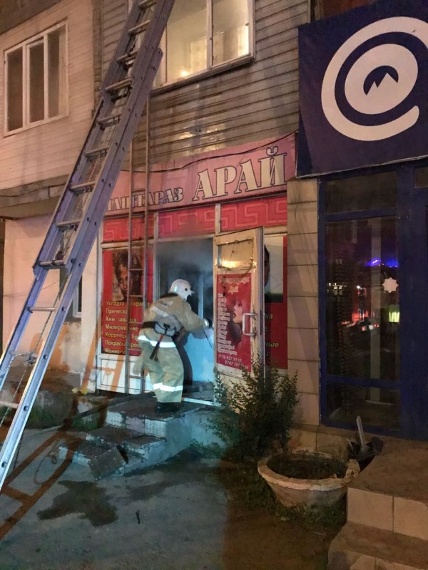 В 21.24 часов на пульт "101" ДЧС Алматы поступило сообщение о задымлении в подъезде по адресу: Ауэзовский район, улица Саина, 14/1. Первые пожарные расчеты прибыли к месту вызова уже через девять минут, в это время наблюдалось сильное задымление в парикмахерской "Арай" на первом этаже четырехэтажного жилого дома. На лестничной клетке создалось плотное задымление, отрезав пути эвакуации для жильцов верхних этажей.