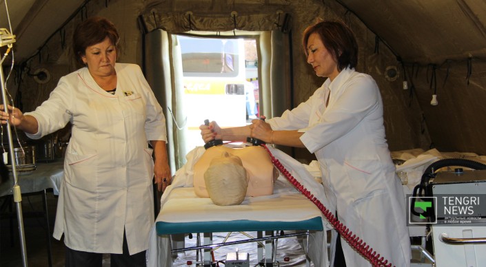 В развернутом полевом госпитале могли оказать первую помощь, сделать УЗИ, а также провести экспресс-тесты на различные заболевания.