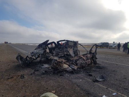 Жуткое ДТП произошло 1 марта примерно в 04:30 часов по местному времени возле поселка Сайотес на автодороге "Актау-Бейнеу" в Мангистауской области, где столкнулись грузовая автомашина марки Shacman и универсал Lada Largus. Об этом сообщает пресс-служба ДВД Мангистауской области.