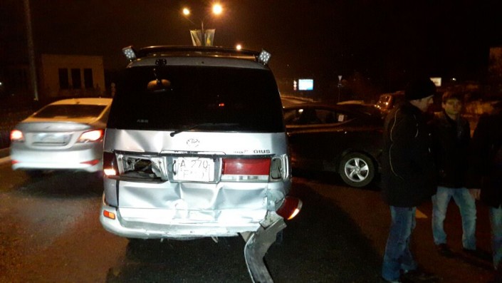 Первая авария произошла на пересечении проспекта Аль-Фараби и улицы Мустафина, где столкнулись 6 автомобилей. Два ДТП с участием 7 машин произошло около улицы Дулати. Еще три аварии произошли в районе улиц Навои и Розыбакиева, пострадали 7 авто.