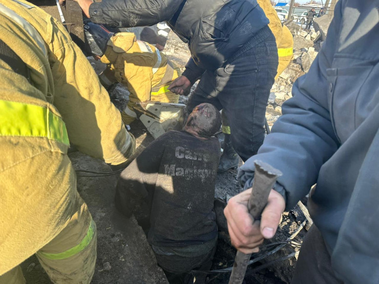 Иманкулов уточнил, что при помощи аварийно-спасательного оборудования и средств малой механизации удалось приподнять плиту перекрытия, которая сдавливала левую ногу пострадавшего, затем при помощи автокрана плита была поднята полностью и пострадавшего извлекли из под завала и передали карете скорой помощи.