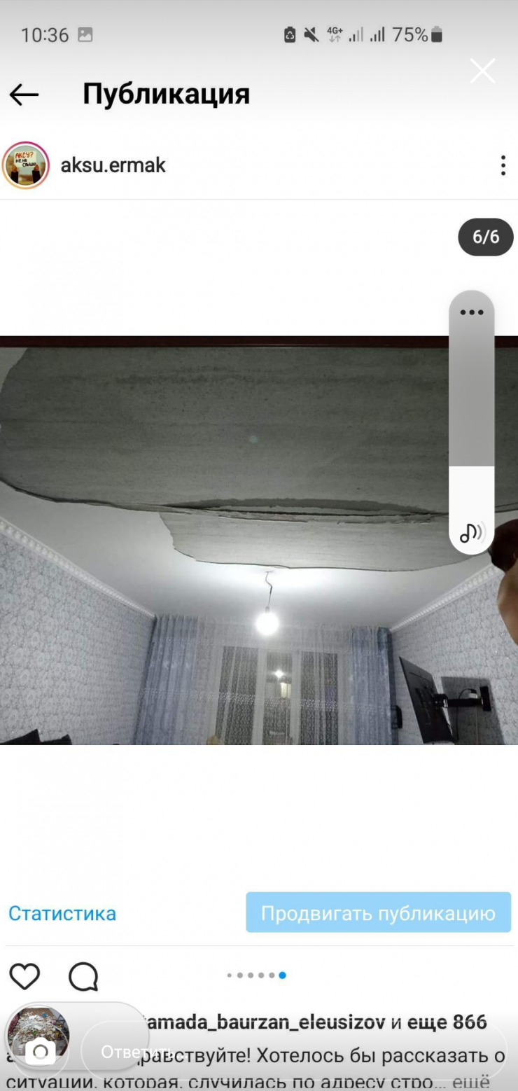 Штукатурка засыпала малолетнего ребенка в новостройке в Аксу Фото:instagram.com/tipavlo.dar