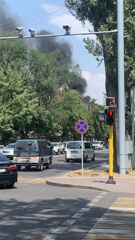 Сильный пожар начался на проспекте Назарбаева в Алматы Фото Михаила Егорина